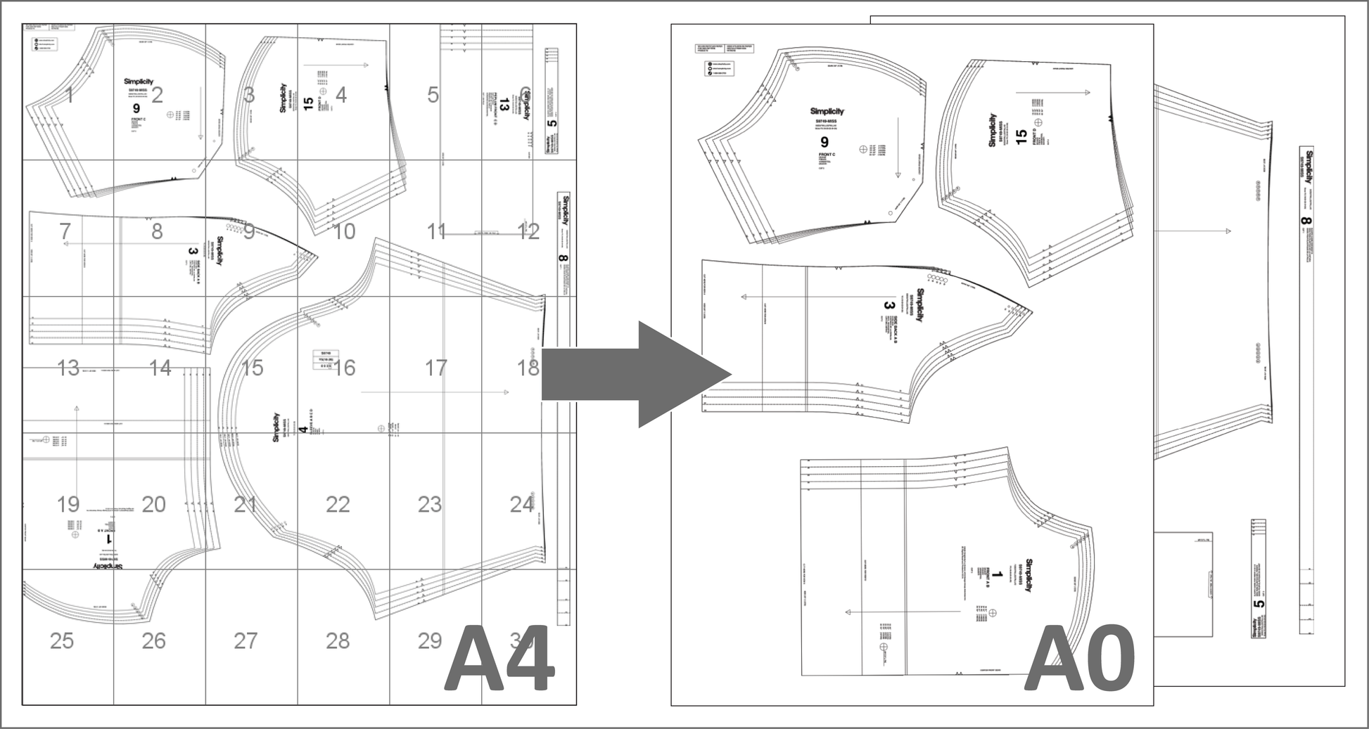 Heb je een naaipatroon dat bestaat uit losse A4-pagina’s? Geen zin om zelf te puzzelen, plakken en knippen? Laat mij het omzetten naar een overzichtelijk A0-bestand dat direct klaar is om te printen!